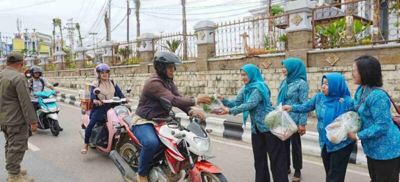 Melalui kegiatan ini, TP PKK Kabupaten Barito Utara yang turut didampingi Ketua GOW membagikan sebanyak 200 paket kebutuhan pangan kepada masyarakat. Paket tersebut berisi sayur-mayur, telur, dan lombok (cabai) yang diserahkan kepada warga sekitar serta para pengguna jalan yang melintas di lokasi kegiatan.